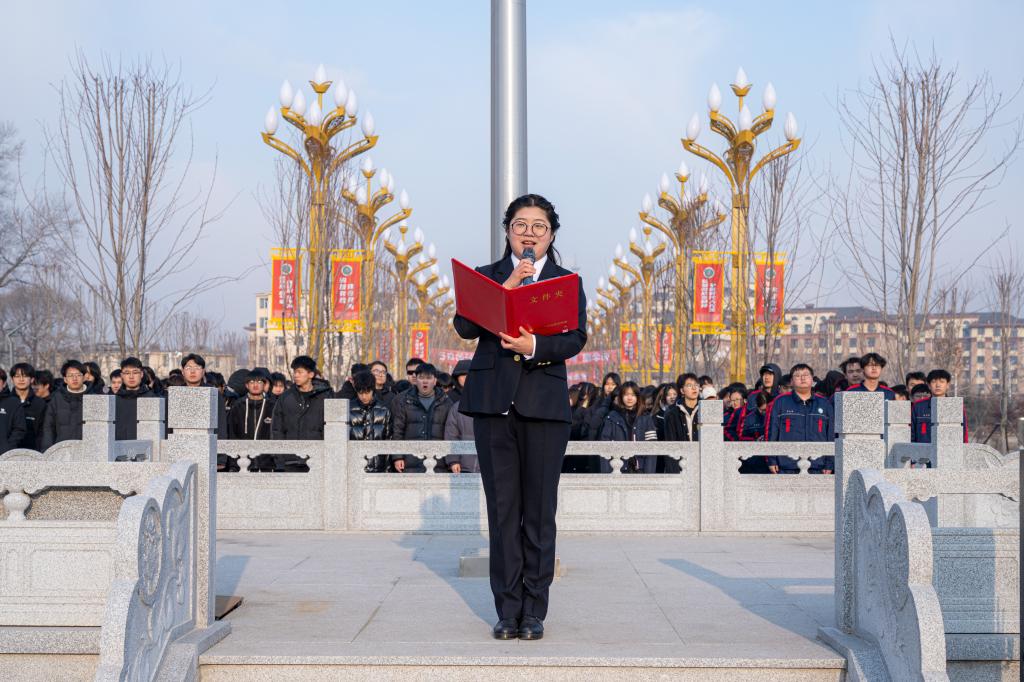 学生代表兰奉轩以“新学期,新憧憬,新征程”为主题激情发言,呼吁同学们以课堂为阵地,汲取知识养分,课余时间拓宽视野,积极参与社团活动锻炼自我,把个人梦想融入时代发展洪流,把爱国热情化作奋进动力,书写青春担当。