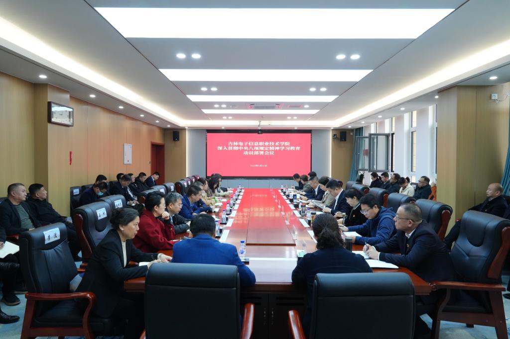 会议指出,开展深入贯彻中央八项规定精神学习教育,是今年党建工作的重点任务,是巩固深化主题教育和党纪学习教育成果、纵深推进全面从严治党的重要举措,是密切党群干群关系、巩固党的执政基础的必然要求,是贯彻落实全国教育大会精神、推动筹办职业技术大学的有力保障。面对“四大工程”“十大行动”等硬任务,党员干部必须通过学习教育,把“讲规矩”与“敢担当”统一起来,以作风之变激活干事创业的“一池春水”。