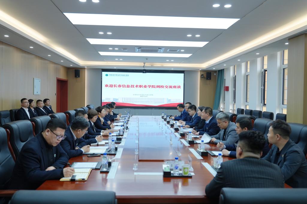 4月8日,长春信息技术职业学院党委书记齐乐、副校长杨玉斌带领学校有关职能部门负责人一行11人来校调研交流。