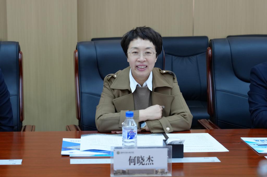 何晓杰代表学校致欢迎辞,对兄弟院校同仁的到访表示欢迎。她表示,双方同在一城,共饮一江水,有着深厚的友谊,在服务国家战略、赋能产业升级、服务区域发展的使命上高度契合。并围绕产教融合、专业建设、人才培养、社会服务、师资队伍建设、就业创业等方面介绍了学校发展情况,希望通过实地考察、座谈研讨,推动双方实现互通有无、共谋发展,为职业教育高质量发展持续注入新动能。